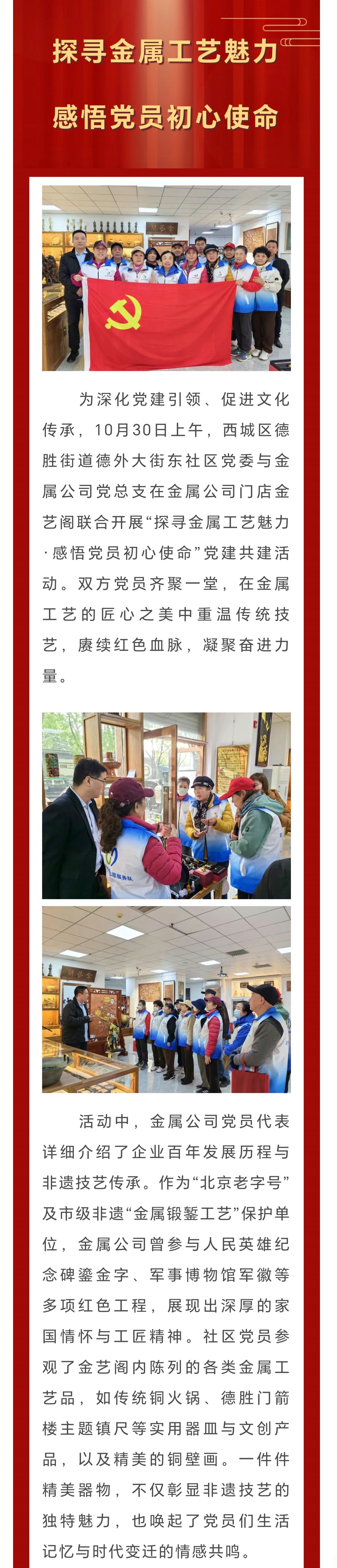 探寻金属工艺魅力·感悟党员初心使命——德外大街东社区党委与金属公司党总支开展党建共建活动